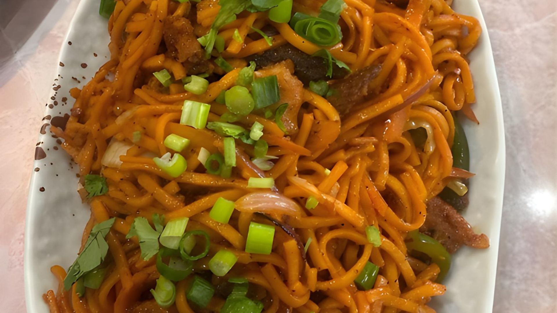 Noodles in a savoury broth with vegetables, spices and Buff.