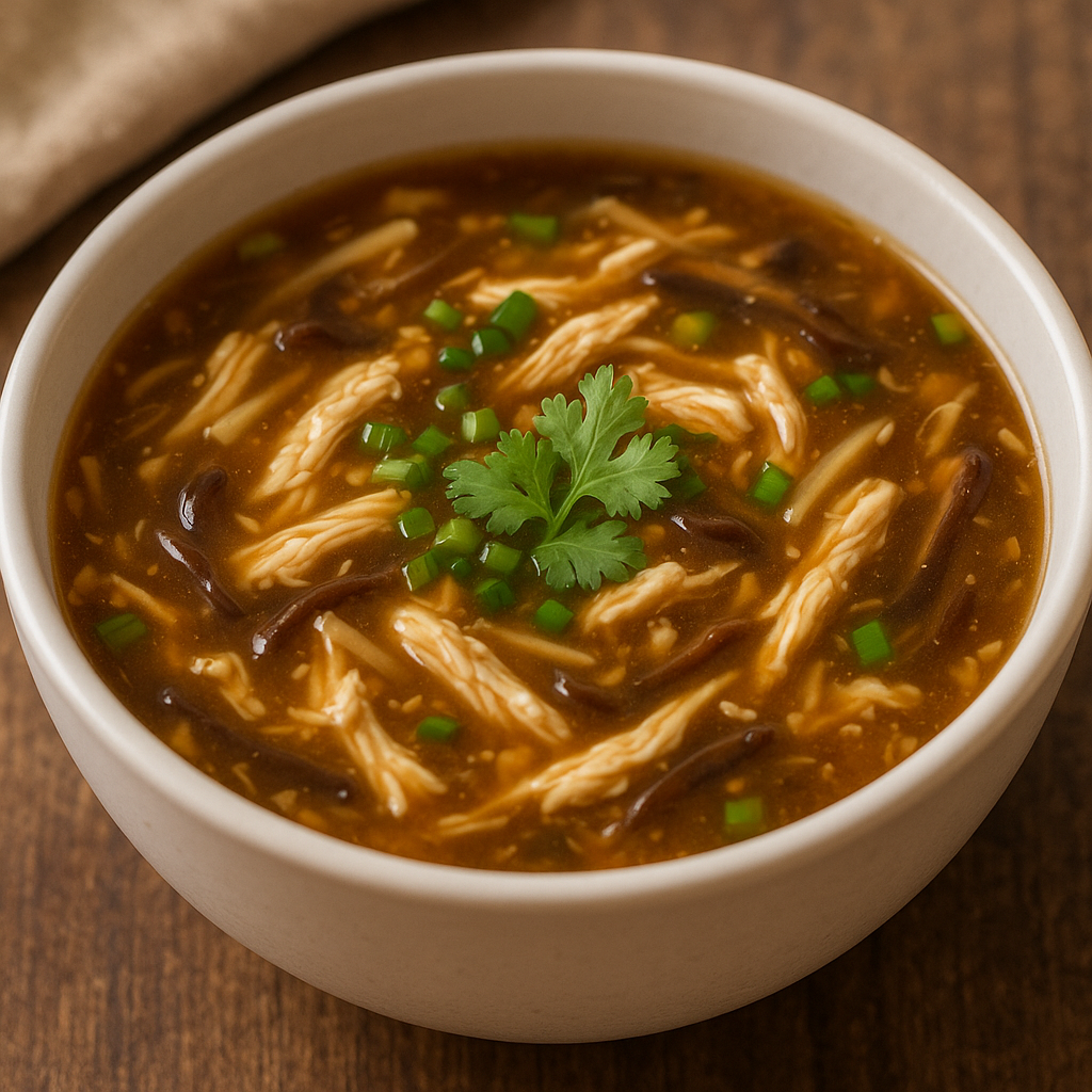 Noodles in a savoury broth with vegetables, spices and Chicken.