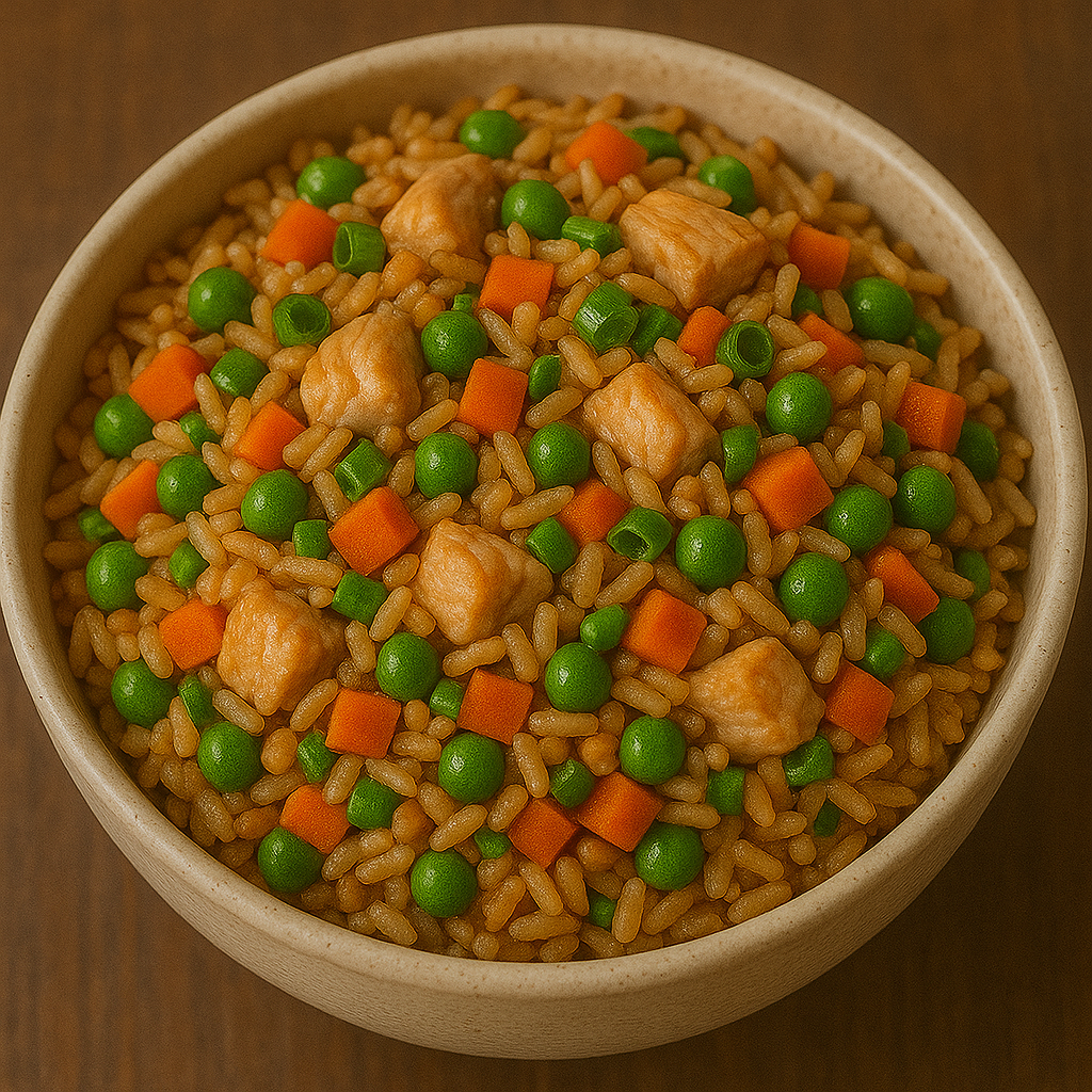 Stir fried rice with vegetables, Chicken, seasoned with Nepali spices.